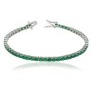 Our sterling silver tennis bracelet celebrates the May birthstone. We use the highest quality cubic zirconia stones that sparkle beautifully in any lightning. The tennis bracelet. known for its delicate and timeless design. features a continuous line of stones. set in a row that wraps around the wrist. making it perfect for both casual and formal occasions. Each bracelet is hand polished and finished in the same way we handle white gold. Locks securely with a two-step snap latch—a smart design for safety.