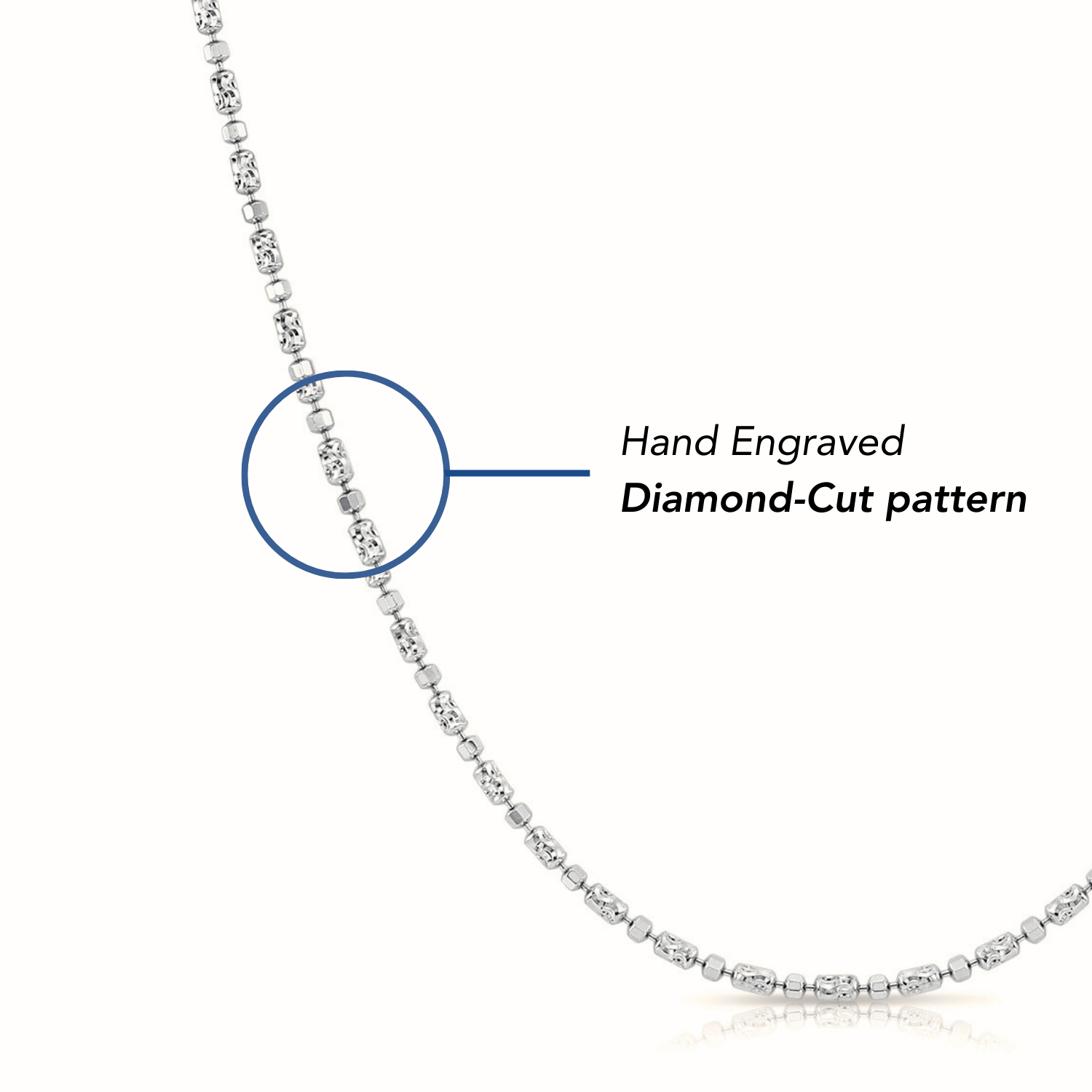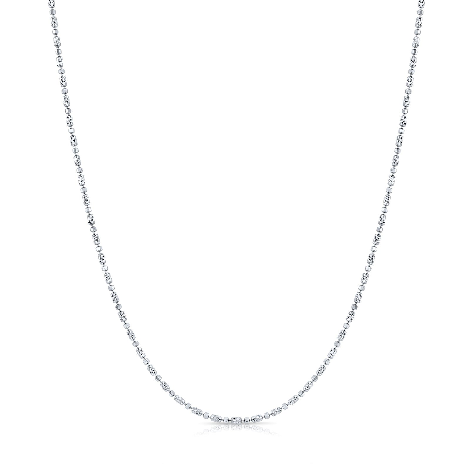 This beautiful sterling silver diamond-cut bead necklace features a row of textured barrel links and high-polish cubes for a brilliant. light-catching finish. The premium Italian craftsmanship ensures a durable. high-quality shine. while the secure lobster claw clasp makes it a versatile staple for any jewelry collection.